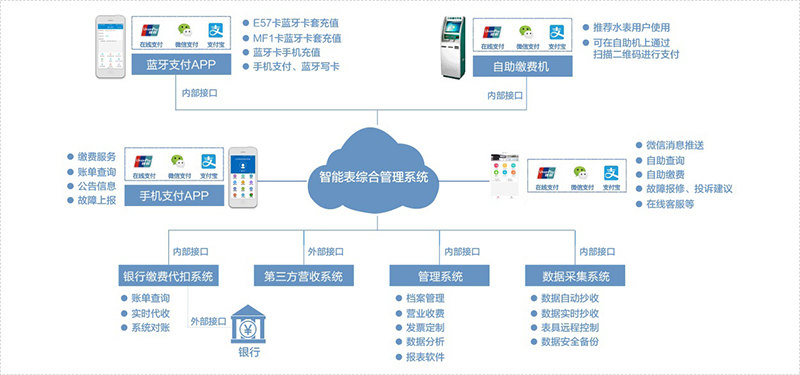6)利用微信公眾號平臺接口,結(jié)合數(shù)據(jù)采集系統(tǒng)實現(xiàn)智能表的微信抄控、欠費通知推送、歷史用量查詢及微信繳費支付等功能,結(jié)合電話客服、短信客服、網(wǎng)上客服實現(xiàn)多元化的客戶溝通方式;