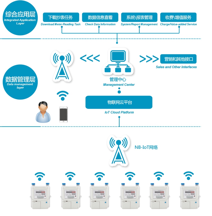 NB-IoT物聯(lián)網(wǎng)燃氣表能與管理系統(tǒng)配合實現(xiàn)無卡預付費、遠程閥控、階梯氣價、價格調(diào)整等功能,用戶可通過手機APP進行繳費。