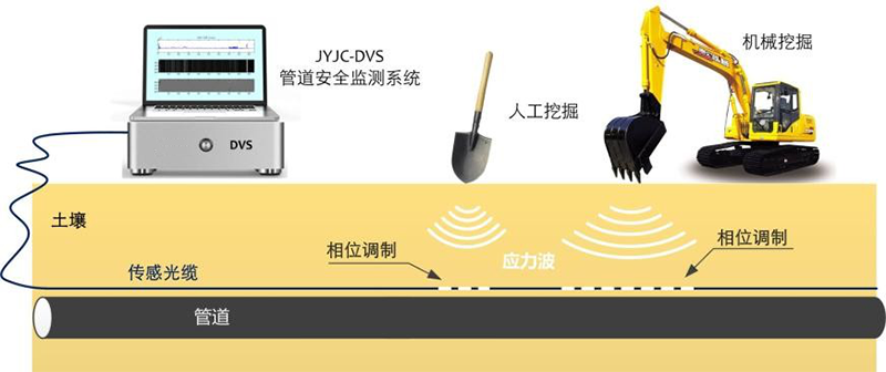 監(jiān)測那些有可能對管道安全運行造成威脅的外界入侵事件,如第三方施工挖掘。在入侵事件發(fā)生的第一時間進(jìn)行報警、定位、事件類型分析,幫助業(yè)主及時排除安全隱患。